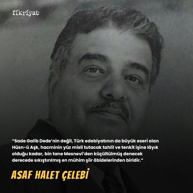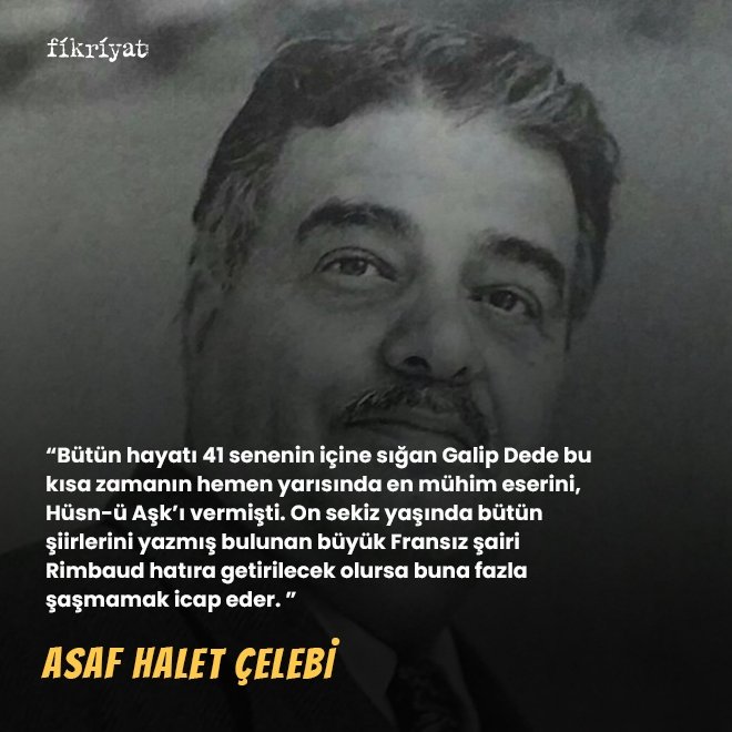 "Bütün hayatı 41 senenin içine sığan Galip Dede bu kısa zamanın hemen yarısında en mühim eserini, Hüsn-ü Aşk'ı vermişti. On sekiz yaşında bütün şiirlerini yazmış bulunan büyük Fransız şairi Rimbaud hatıra getirilecek olursa buna fazla şaşmamak icap eder. Yaşayacak fazla zamanları olmayan bazı dâhiler, olgunluklarını hayatının normal seyrinden çok evvel tamamlamış oluyorlar. Biri Fransız, diğeri diğeri Türk edebiyatının büyük çapta dâhileri olan bu iki şair de bunu gösteriyor. Ancak Galib Dede'nin ne muhiti, ne yaşayış tarzı ötekine hiç benzemez; büsbütün ayrı, son derece temiz, mütevazı olduğu kadar da şerefli ve caziptir.