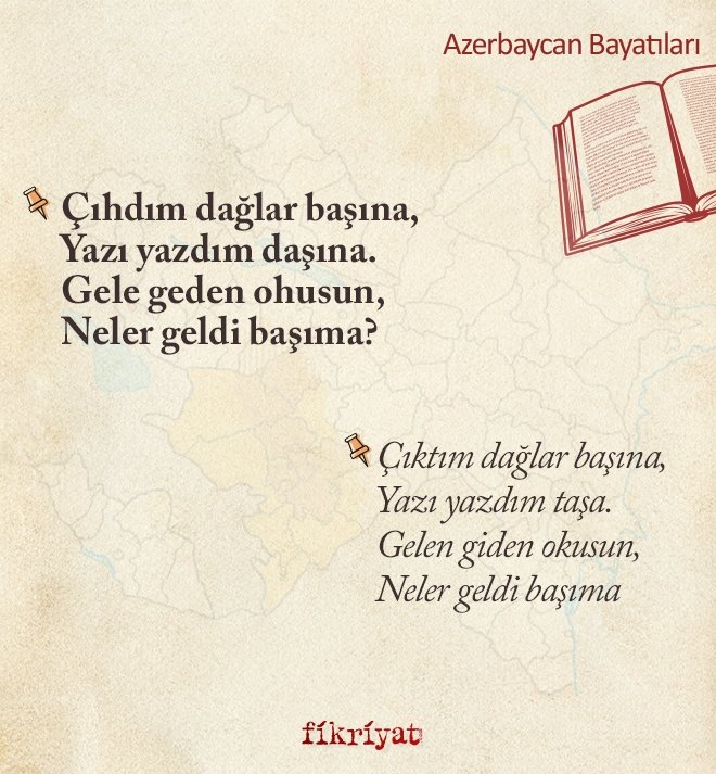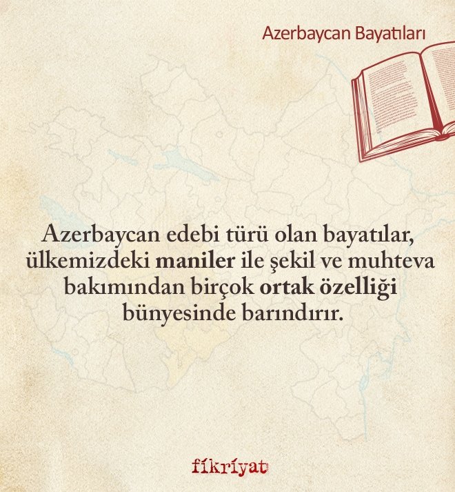 ↪Sonuç olarak Azerbaycan edebi türü olan bayatılar, ülkemizdeki maniler ile şekil ve muhteva bakımından birçok ortak özelliği bünyesinde barındırır.