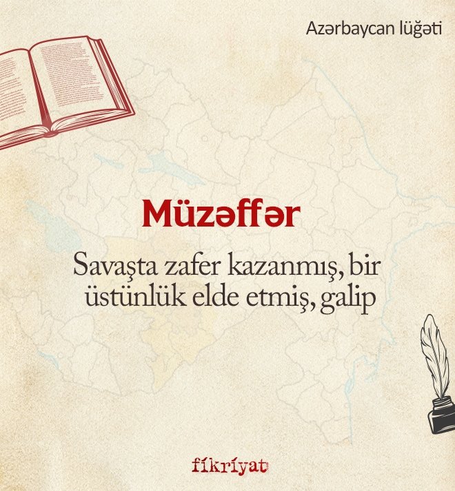 ➡ Arapça kökenli bir kelime olan "muzaffer", "savaşta zafer kazanmış, bir mücâdelede başarı, üstünlük elde etmiş, galip" anlamlarına gelir. Bu kelime Türkiye Türkçesi'nde de sıkça kullanılır