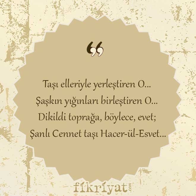 "Bu eser, dünyaya gelişimden bugüne kadar en hususî renkleri, çizgileri ve sesleriyle hayatımın hikâyesi ve asıl O'nu tanıdıktan sonra mânasını anlamaya başladığım vücut hikmetinin bende tecelli eden yakıcı ifadesidir. Bu bakımdan, kendilerini görünceye kadar malik olabildiğim birbuçuk esere nisbetle bugün 60 cildi aşan ve hepsini birden o nura borçlu bildiğim eserler arasında, şimdikini, baş köşeye oturtulması lâzım ve en mahrem iç ve dış iklimlere doğru bir belirtiş olarak takdim ederim."