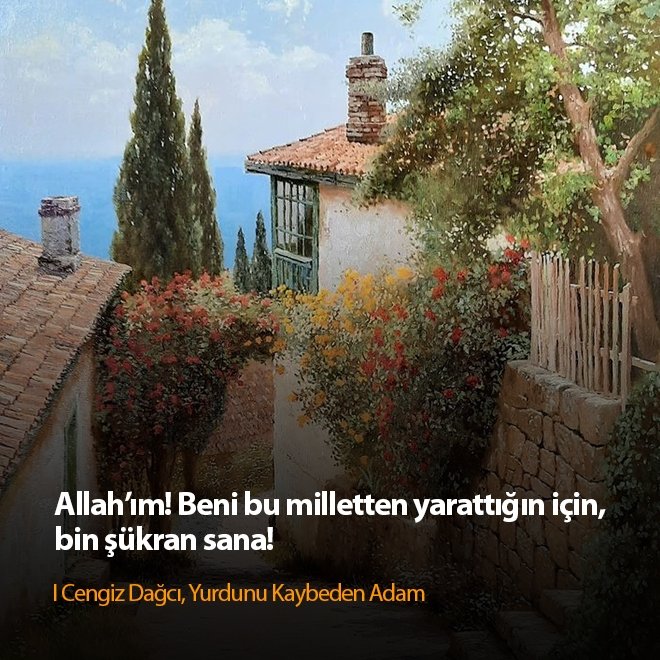 Nogay bozkırları! Yüz yetmiş yıl, kıyılara inerken toprağını avuç avuç alıp titreyen dudaklarıyla öpen mazlum anaların; yerinden yurdundan atılan babaların "Aytır da ağlarım" diyen seslerini dinlesin. Onların sesinde sen vardın toprak! Onlar seni bırakmadılar, onlar senden kaçmadılar. Onlar yalnız sana, bir de Allah'a, bütün benlikleriyle bağlanıp yaşamak istediler. Yaşayamadılar. Yaşatılmadılar...