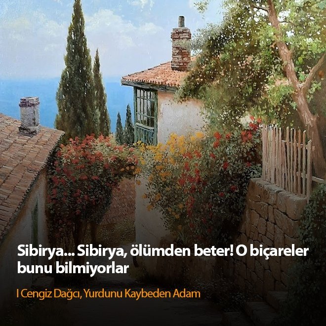 Sibirya... Sibirya, ölümden beter! O biçareler bunu bilmiyorlar. Ben biliyorum, suçsuz, günahsız insanları, bellerine dipçik vura vura, evlerinden, ocaklarından karlı buzlu yollara attıklarını ben kendi gözlerimle gördüm. Ana diyecek yaşa gelmemiş çocukları Sibirya ormanlarına sürdüklerini ben kendi gözlerimle gördüm.