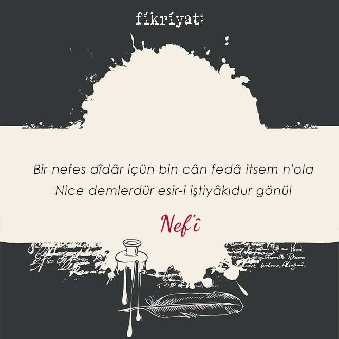 17. yüzyıl Klasik Türk edebiyatının en önemli şairlerinden olan Nef'i, Osmanlı'da dört padişahın saltanatına tanıklık etti. Devlet erkanının takdirini kazandı. Edebiyatımızın hiciv ustalarının başında gelen bir Nef'i, söylemek istediğini mazmunlar arkasına saklamak yerine, açıkça söylemeyi tercih etti.