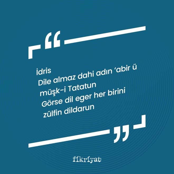Eger lafzının dili olan "kaf" harfinin yerine dildarın iki zülfünden biri olan "dal" harfi getirilir. "Görse" ile bu ikisi birleşirse "eder" olur. Zülfün diğeri "lam" harfidir. Burada amaçlanan "si" hecesidir. Aks görse yani dönse "is" olur. Hepsi bir araya gelirse "İdris" adı ortaya çıkar.