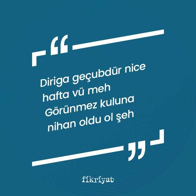 Diriga geçubdür nice hafta vü meh