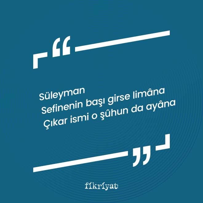 Sefinenin başı "se" harfidir. "Liman" kelimesi ile birleştirildiğinde "Süleyman" olur.