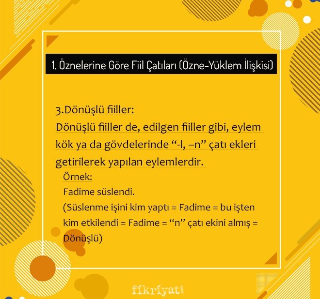 📌Dönüşlü fiillerde eylemin kim tarafından yapıldığı bilinmekte (gerçek özne) ve bu yapılan işten etkilenen yine özne olmaktadır.