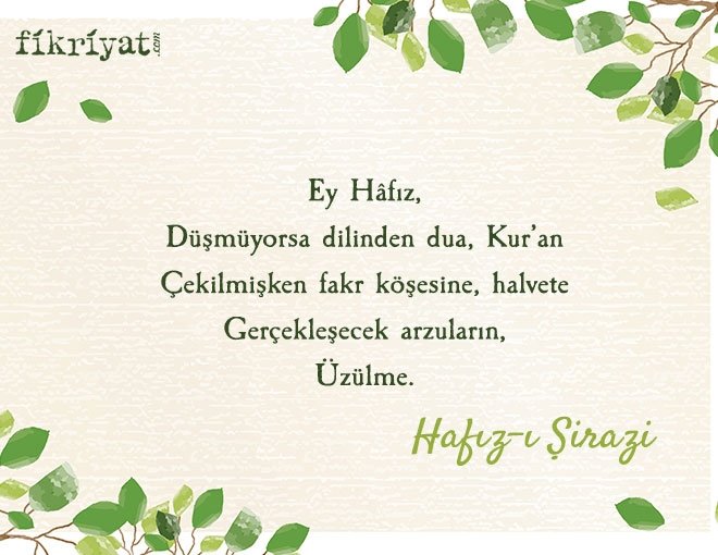 Ey Hâfız, düşmüyorsa dilinden dua, Kur'an,