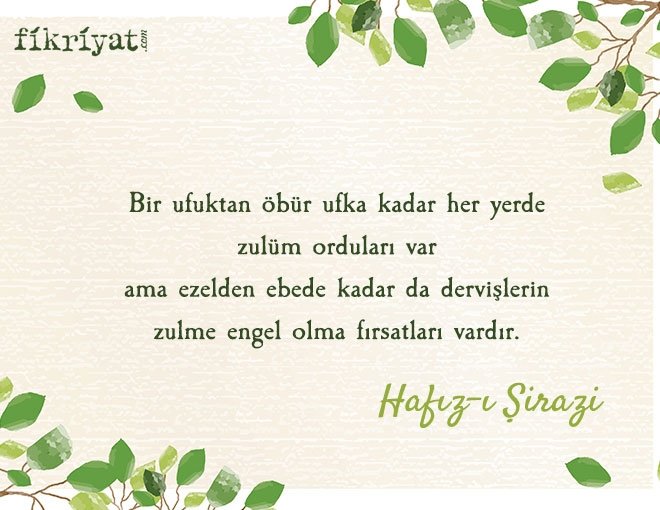 Hafız-ı Şirazi, İran edebiyatının en büyük şairlerinden biri olarak kabul edilir. Divanı da Türkiye'de Mesnevi ve Gülistan'dan sonra en çok okunan Farsça eserdir. Öyle ki, eski dönemdeki insanlar, Hafız-ı Şirazi'nin divanından rastgele bir sayfa açıp karşılarına çıkan beyiti okurlardı. Hafız Divanı'ndan beyitleri sizler için derledik.