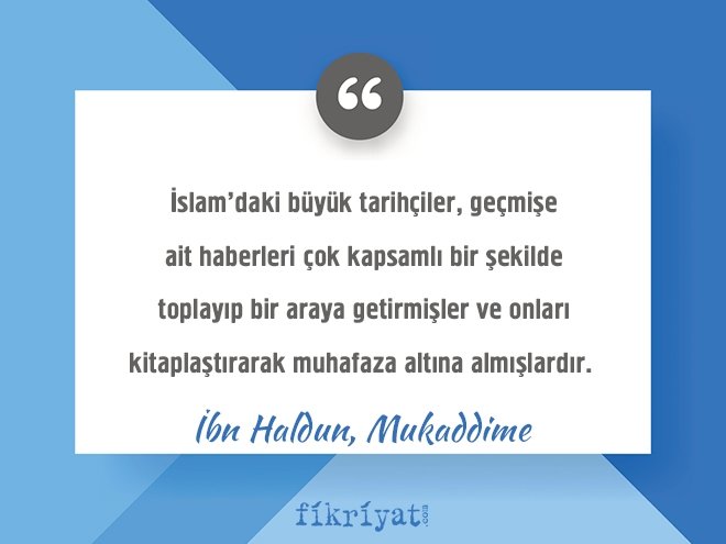 İslam'daki büyük tarihçiler, geçmişe ait haberleri çok kapsamlı bir şekilde toplayıp bir araya getirmişler ve onları kitaplaştırarak muhafaza altına almışlardır. Bu konuda (yetersiz ve ehliyetsiz) başkalarının hazırına konanlar ise, (doğru) tarihî bilgileri uydurma rivayetlerle veya bizzat uydurdukları yalanlarla birbirine karıştırmışlardır. Onlardan sonra gelen pek çok kişi de bu uydurma haberlere tabi olmuş, olayları ve durumları inceleyip değerlendirmeden, bunların gerçekliğini ve olabilirliğini gözden geçirmeden, atılması gerekenleri ayıklayıp atmadan her şeyi duydukları şekilde bize nakletmişlerdir.