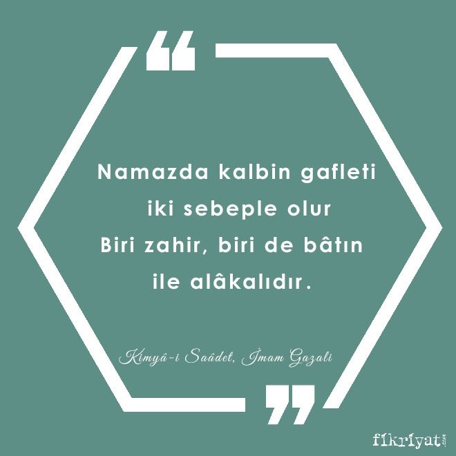 🔸 Namazda kalbin gafleti iki sebeple olur. Biri zahir, biri de bâtın ile alâkalıdır. Zahiri olan gaflet şöyledir: Namaz kıldığı yerde kalbini meşgul edecek bir şey görmesi veya bir ses duymasıdır. Kalp de göze ve kulağa tâbidir. Bunun çaresi, hiç ses olmayan bir yerde namaz kılmaktır. Eğer orası karanlık olursa daha iyi olur. Göz de bir yere takılmaktan kurtulur.