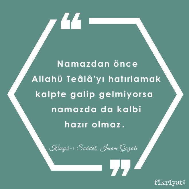 🔸 Namazdan önce Allahü Teâlâ'yı hatırlamak kalpte galip gelmiyorsa, namazda da kalbi hazır olmaz. Vaki' olan düşüncelerden kalp, namazda da olsa kurtulamaz.
