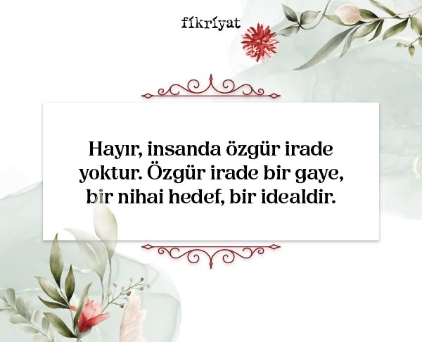 Hayır, insanda özgür irade yoktur. Özgür irade bir gaye, bir nihai hedef, bir idealdir.