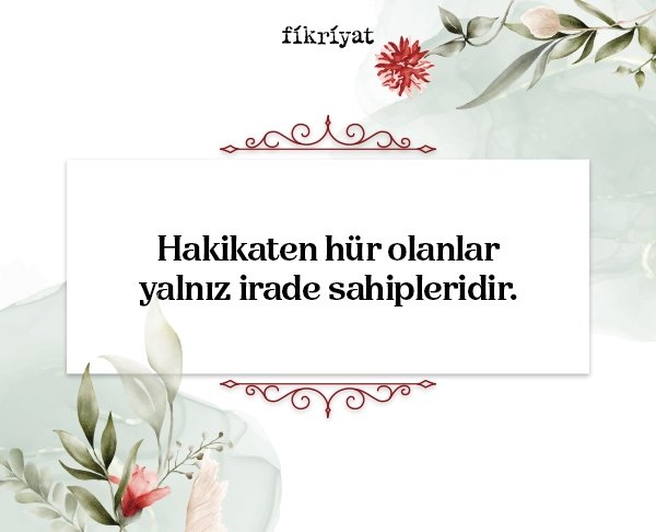 Hakikaten hür olanlar yalnız irade sahipleridir.