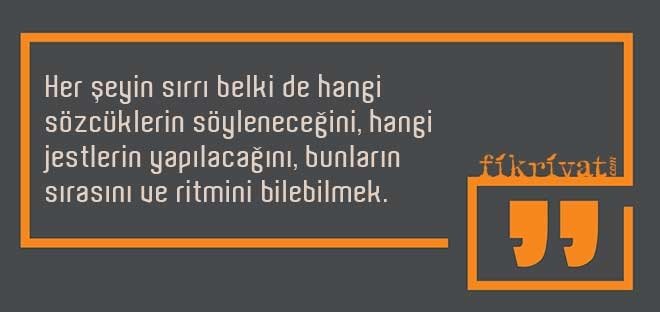 "Her şeyin sırrı belki de hangi sözcüklerin söyleneceğini, hangi jestlerin yapılacağını, bunların sırasını ve ritmini bilebilmek."