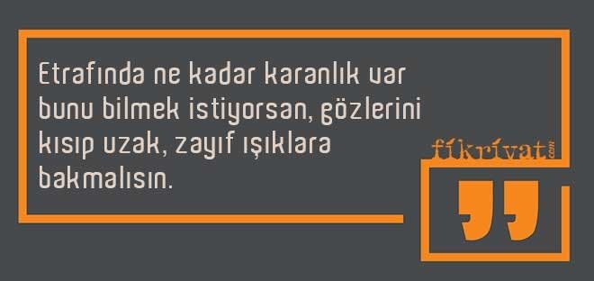 "Etrafında ne kadar karanlık var bunu bilmek istiyorsan, gözlerini kısıp uzak, zayıf ışıklara bakmalısın."