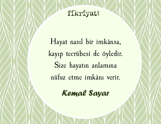 Kemal Sayar'ın Her Şeyin Bir Anlamı Var kitabından alıntı ve sözler