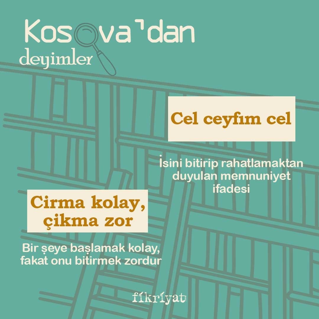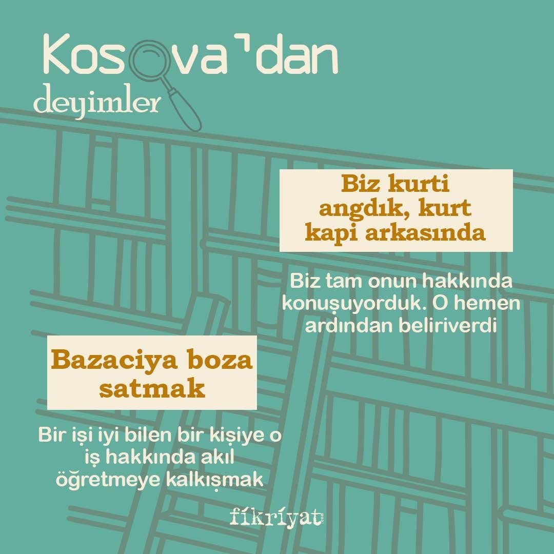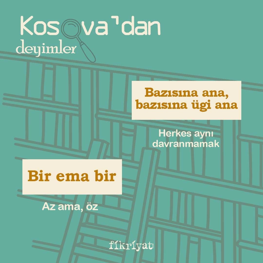 Osmanlı Devleti, Balkan topraklarına uzun yıllar hakim oldu. Bu topraklardan bizlere, sözlü kültürün en önemli ögelerinden olan "deyimler" miras olarak kaldı. Gelecek nesillere aktarılan ve aktarılmaya devam eden deyimlerin, Kosova'nın şehirlerinden; Priştine, Prizren ve Mamuşa ağızlarına ait örneklerini sizler için derledik.
