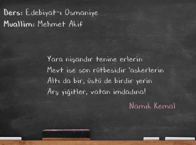 İstiklal şairi Mehmet Akif, hayatının çeşitli dönemlerinde muallimlik yaptı. Verdiği edebiyat dersleri ile birçok talebenin ufkunu açtı. Öğrencileri arasında Reşat Nuri Güntekin, Falih Rıfkı Atay, Ruşen Eşref Ünaydın, Celaleddin Ökten gibi isimler yer alıyordu. Derslerinde kendi şiirlerini okumasa da birçok şairden istifade edip, anlattığı konuları onların dizeleriyle örneklendirdi. Gelin, Mehmet Akif'in derslerinde işlediği şiirlere daha yakından bakalım.