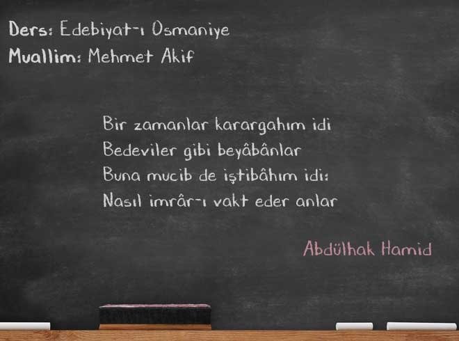 İstiklal şairi Mehmet Akif, hayatının çeşitli dönemlerinde muallimlik yaptı. Verdiği edebiyat dersleri ile birçok talebenin ufkunu açtı. Öğrencileri arasında Reşat Nuri Güntekin, Falih Rıfkı Atay, Ruşen Eşref Ünaydın, Celaleddin Ökten gibi isimler yer alıyordu. Derslerinde kendi şiirlerini okumasa da birçok şairden istifade edip, anlattığı konuları onların dizeleriyle örneklendirdi. Gelin, Mehmet Akif'in derslerinde işlediği şiirlere daha yakından bakalım.