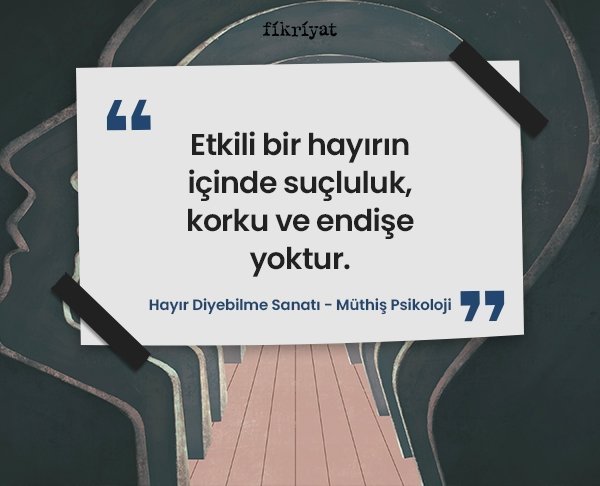 Dilediğiniz zaman dilediğiniz yemeği yiyebiliyor olmak mümkündür. Peki, "hayır" diyebilmek... Hayır, demek insana verilmiş en büyük ve en önemli bir seçim hakkı iken bazı kişiler hayır diyebilmeyi kendisi için uygun görmemektedir. Müthiş Psikoloji'nin "Hayır Diyebilme Sanatı"ndan sizler için hazırladığımız altı çizili satırlar, seçimlerinize bir pencere olacak.