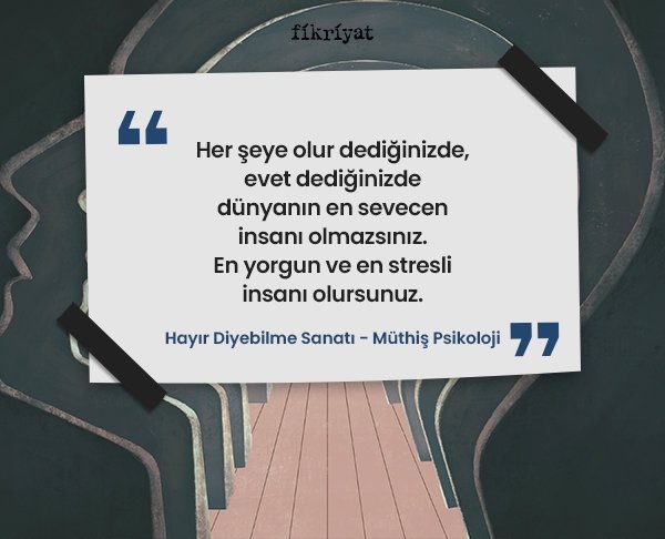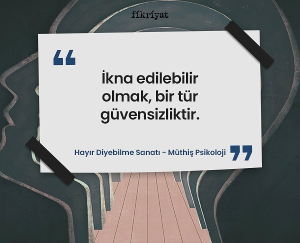 Dilediğiniz zaman dilediğiniz yemeği yiyebiliyor olmak mümkündür. Peki, "hayır" diyebilmek... Hayır, demek insana verilmiş en büyük ve en önemli bir seçim hakkı iken bazı kişiler hayır diyebilmeyi kendisi için uygun görmemektedir. Müthiş Psikoloji'nin "Hayır Diyebilme Sanatı"ndan sizler için hazırladığımız altı çizili satırlar, seçimlerinize bir pencere olacak.