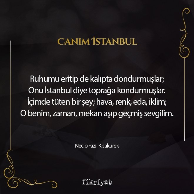 🔸 Üstad Necip Fazıl'ın 1963 yılında çok sevdiği İstanbul'a övgü mahiyetinde yazdığı "Canım İstanbul" isimli müstesna bir şiiri bulunur.