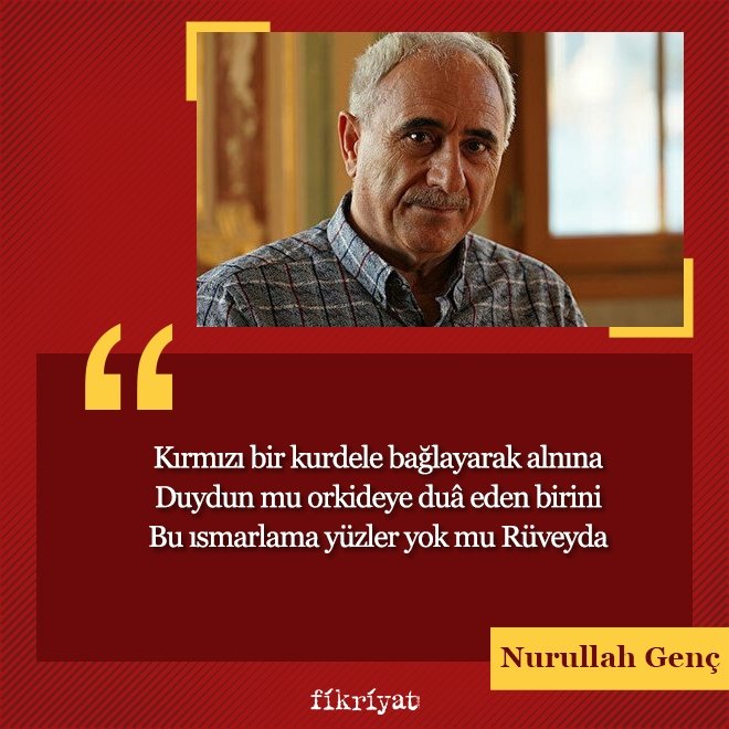 "Yağmur" şiiriyle ismini geniş kitlelere duyuran Nurullah Genç, geniş imge denizinin içinde sebatkar bir şiir işçisidir. Şiirleri ile genç nesli yakalayabilmiş az sayıdaki modern şairden olan Genç, şiire yüklediği ilahi anlam ve sanatsal dokunuşlar ile öne çıkıyor. Bugüne kadar yazdığı eserler Nurullah Genç sözleri ve Nurullah Genç şiirleri başlıkları ile aratılan şairin en bilinen şiirlerini sizler için derledik.