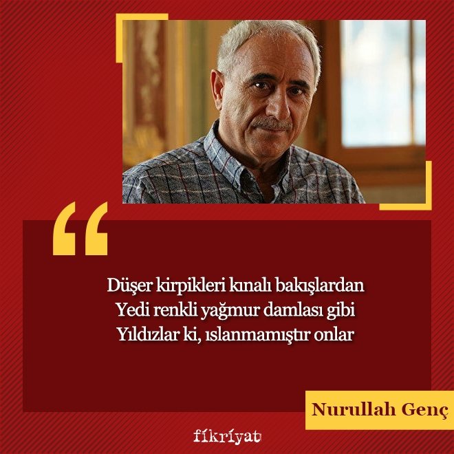 "Yağmur" şiiriyle ismini geniş kitlelere duyuran Nurullah Genç, geniş imge denizinin içinde sebatkar bir şiir işçisidir. Şiirleri ile genç nesli yakalayabilmiş az sayıdaki modern şairden olan Genç, şiire yüklediği ilahi anlam ve sanatsal dokunuşlar ile öne çıkıyor. Bugüne kadar yazdığı eserler Nurullah Genç sözleri ve Nurullah Genç şiirleri başlıkları ile aratılan şairin en bilinen şiirlerini sizler için derledik.