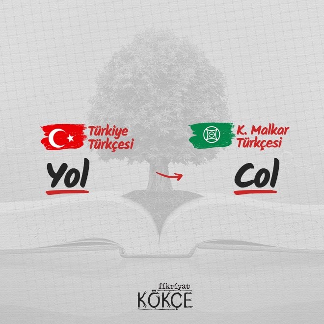 ◾ Örneğin kuzeybatı Türk lehçeleri grubunun temsilcilerinden biri olan Karaçay - Malkar Türkçesinde bu sözcük ufak bir değişime uğrar ve "col" hali ile Karaçay - Malkar lehçesinde bulunur.