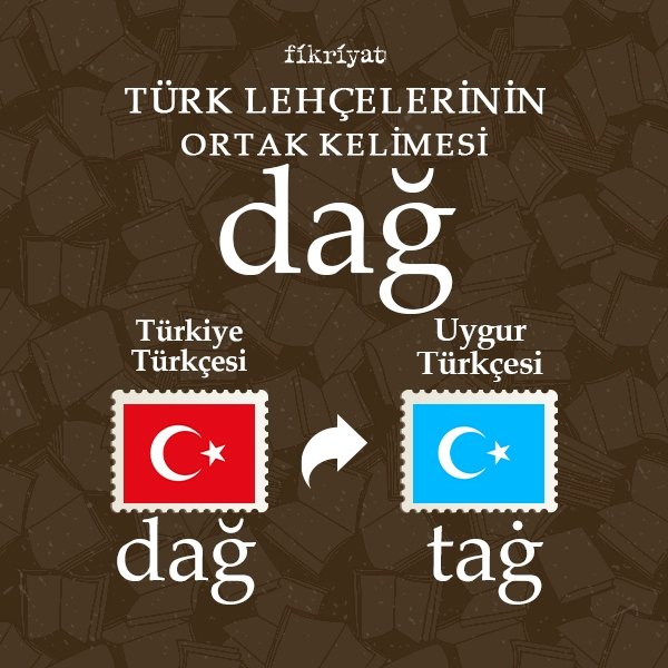 🔸 Yüzyıllardır Çin zulmüne uğrayan Uygurlar, yapılan baskılara rağmen öz Türkçeden vazgeçmemiş ve dillerini korumuşlardır. Bu anlamda da Uygur Türkçesinde "dağ" kelimesini karşılayan "tag" sözcüğü bulunur.