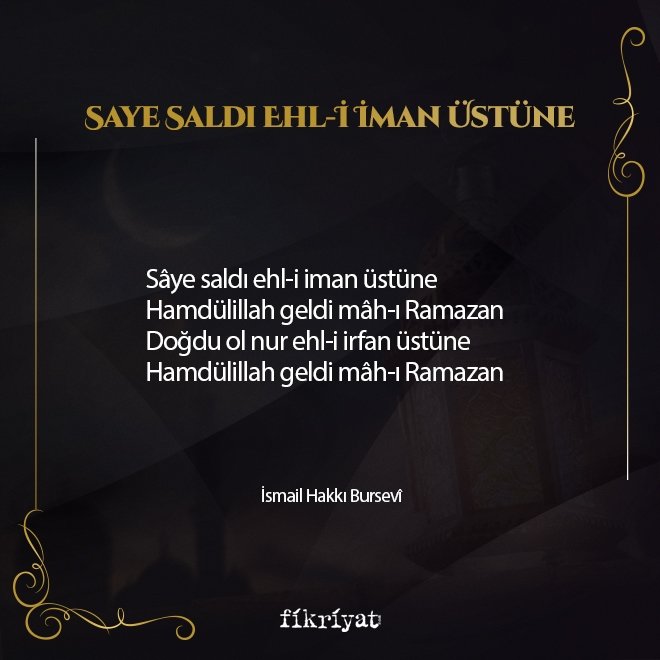 🔹 Bulgaristan doğumlu İsmail Hakkı Bursevi, Celveti şeyhi, müfessir ve şairdir. Yüzden fazla eseri bulunan Bursevi'nin Ramazan ayı ile ilgili şiiri şöyledir: