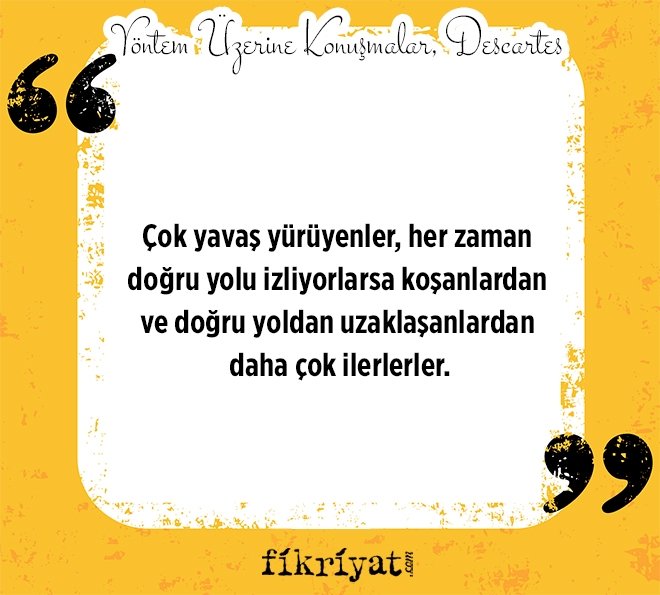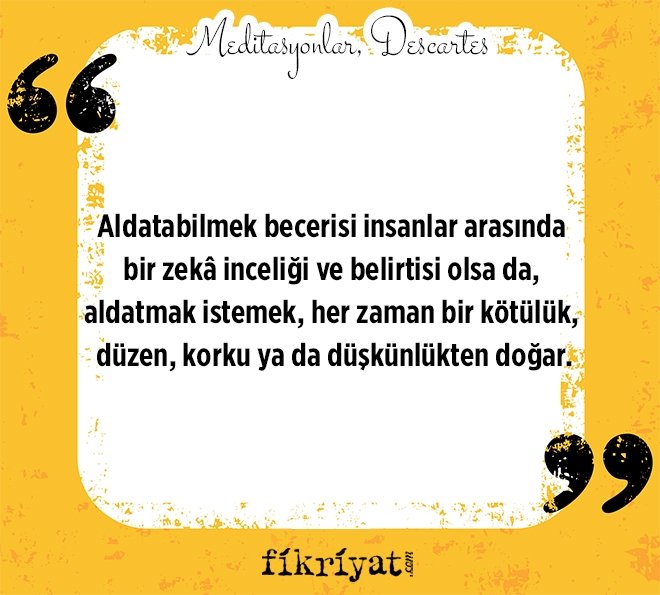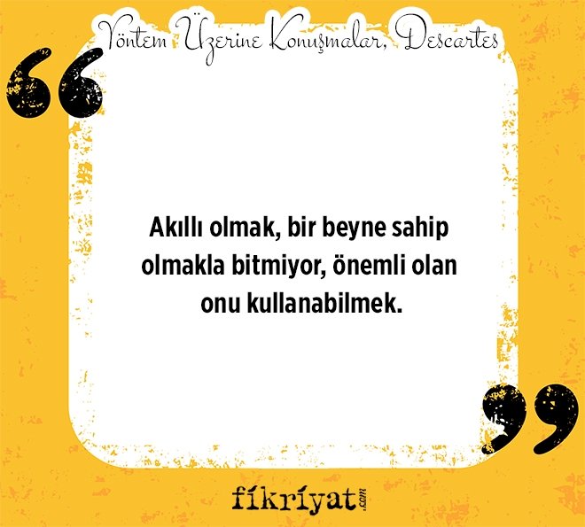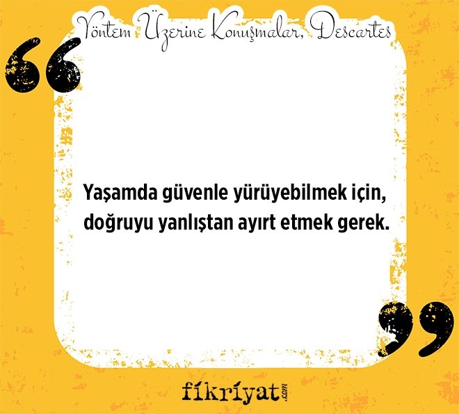 Fransız filozof, matematikçi ve yazar René Descartes, "modern felsefenin babası" unvanıyla anılır. Kendisinden sonra gelenlere büyük bir felsefi miras bırakan Descartes'ın kaleme aldıkları, alana yön vermiş; Batı felsefesi, çoğu zaman onun yazdıklarına cevap üretmeye çalışmıştır. "Düşünüyorum, öyleyse varım" sözüyle hafızalara kazınan, güvenilir olan tek şeyin kendi düşünme ve tümdengelim kabiliyeti olduğunu ifade eden Descartes'ten 20 alıntıyı derledik.