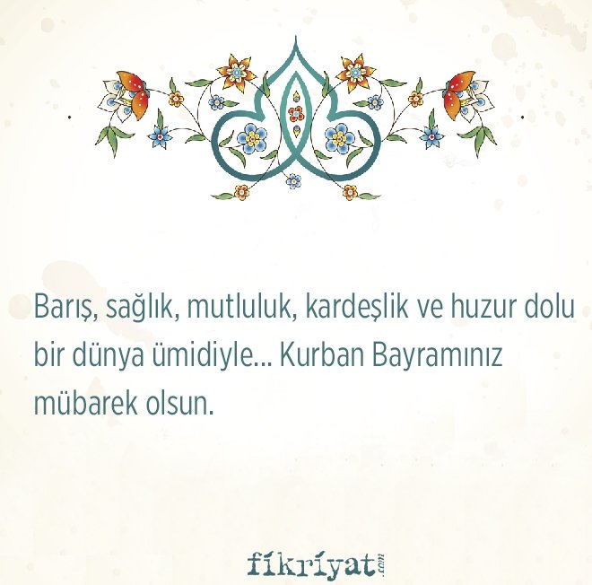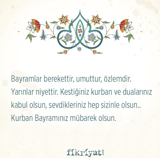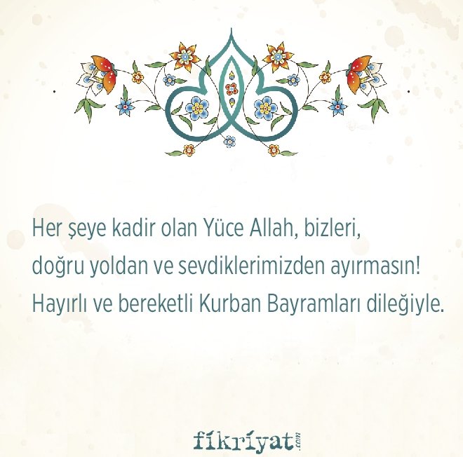 Her şeye kadir olan Yüce Allah, bizleri, doğru yoldan ve sevdiklerimizden ayırmasın! Hayırlı ve bereketli Kurban Bayramları dileğiyle.