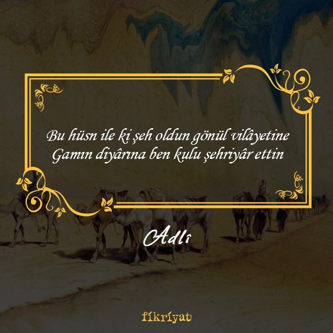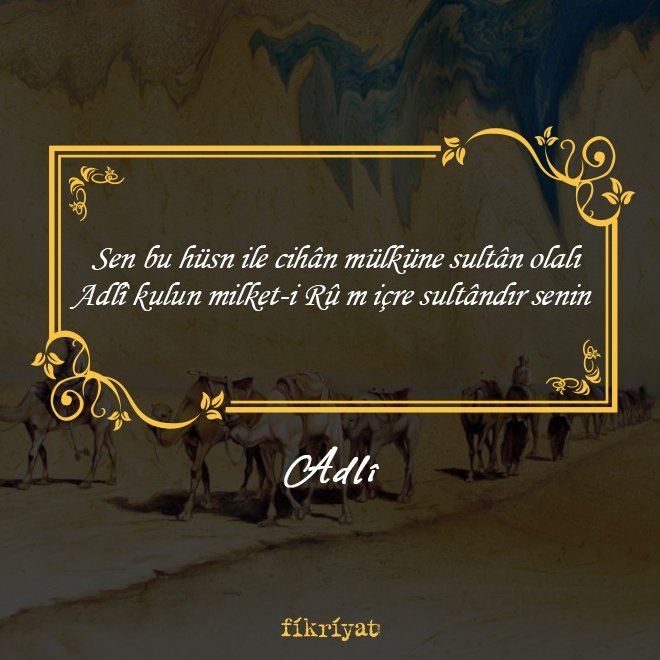 🔸 Sen bu sahip olduğun güzelliklerle bütün dünyadaki güzellerin şahı unvanını aldığında, Adlî kulun da Anadolu'yu yöneten senin kullarından birisidir.