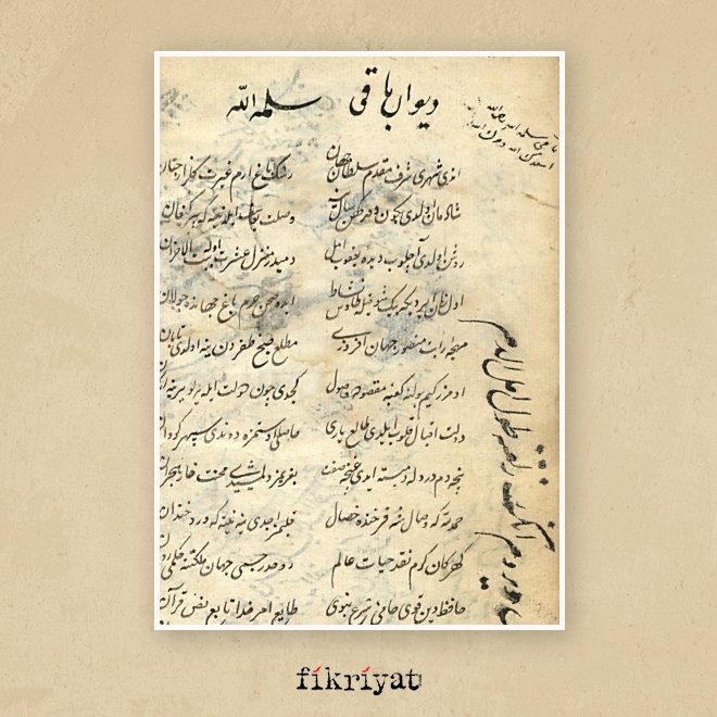 ◾ 1526 - 1600 yılları arasında yaşayan Bâkî, dönemi içerisinde "Sultanü-ş şuara" namı ile anıldı. Şiirleri ile bizzat Sultan I. Süleyman'ın dikkatini çeken şair aynı zamanda ilim ehli bir zattır.