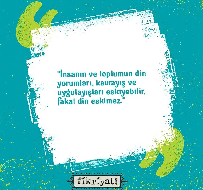 "İnsanın ve toplumun din yorumları, kavrayış ve uygulayışları eskiyebilir, fakat din eskimez."