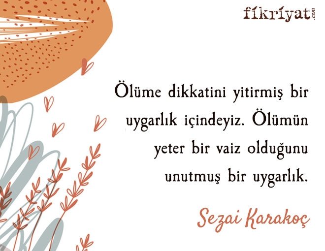 Ölüme dikkatini yitirmiş bir uygarlık içindeyiz. Ölümün yeter bir vaiz olduğunu unutmuş bir uygarlık.