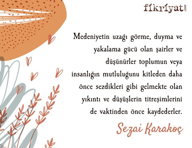 Medeniyetin uzağı görme, duyma ve yakalama gücü olan şairler ve düşünürler toplumun veya insanlığın mutluluğunu kitleden daha önce sezdikleri gibi gelmekte olan yıkıntı ve düşüşlerin titreşimlerini de vaktinden önce kaydederler.