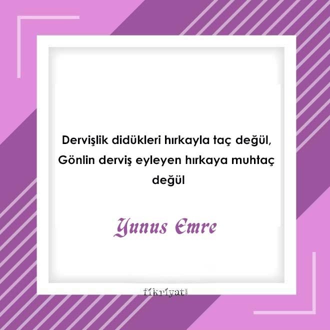 13. yüzyılda Anadolu'ya birçok mürit ve derviş geldi. Dervişliğin oldukça yaygın olduğu bu dönemde Yunus Emre, Allah yolunda olanların özelliklerini sıraladı. Önemli olan bir tarikata girmek değil, Hak yolunda bir olmaktır. Bir diğer şiirinde de şöyle der Yunus Emre: