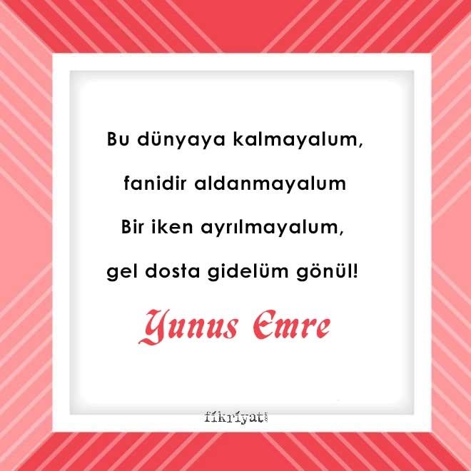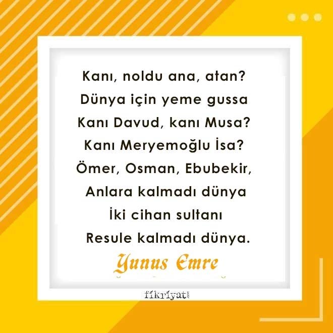 ➡ Yunus Emre, şiirlerinde her daim dünyanın geçiciliğine dikkat çeker. Geçici hevesler için, insanların birbirine düşmemesini ister.