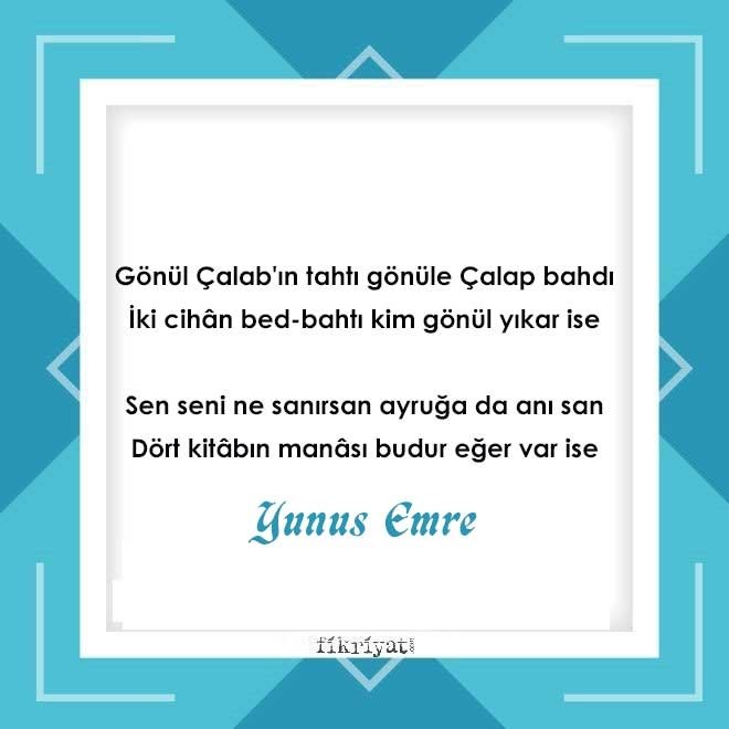 ➡ Yunus Emre'nin şiirlerini okuyan herkes, kendinden bir parça bulur. O dizelerindeki gönül yapıcılığı, sevgi ve hoşgörüsüyle evrenselleşti.