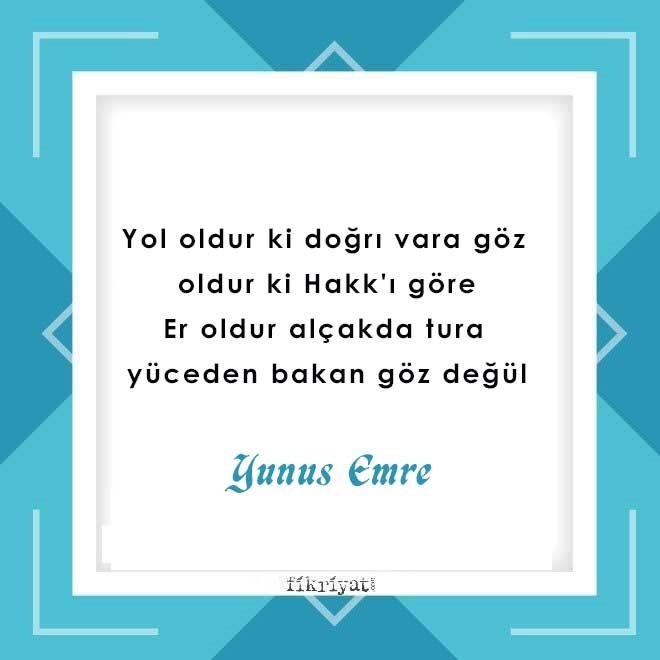 Yol oldur ki doğrı vara göz oldur ki Hakk'ı göre
