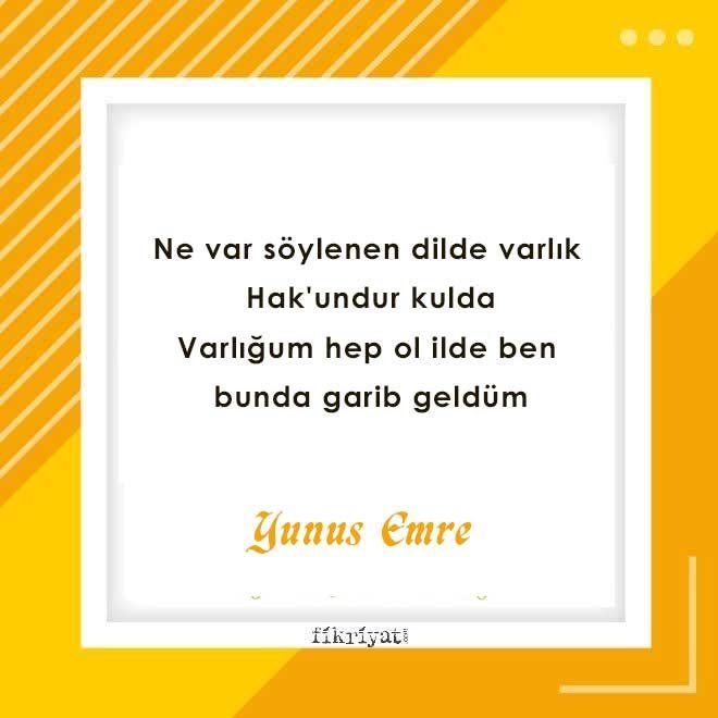 ➡ "Ne var söylenen dilde varlık Hak'undur kulda" dizeleri de bu anlayış ile kaleme alındı.