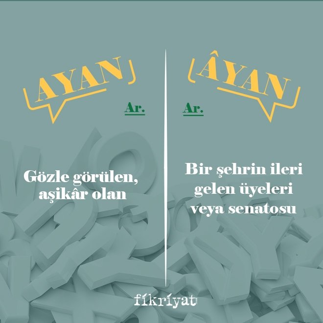 ◾ Ayan: Arapça iyn kökünden gelen kelime, gözle görülen, belli veya aşikâr olan anlamlarına gelmektedir.