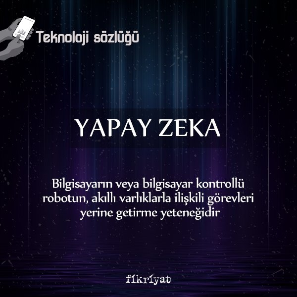 🔸 Bir bilgisayarın veya bilgisayar kontrollü robotun, genellikle akıllı varlıklarla ilişkili görevleri yerine getirme yeteneğidir.