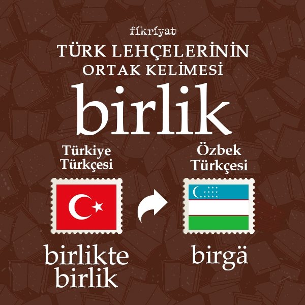 🔻 Uygur Türkçesinden sonra güneydoğu (Karluk) Türkçesinin temsilcisi durumunda olan Özbek lehçesinde, "birlik, birlikte ve beraber" kelimelerini "birga" kelimesi karşılamaktadır.
