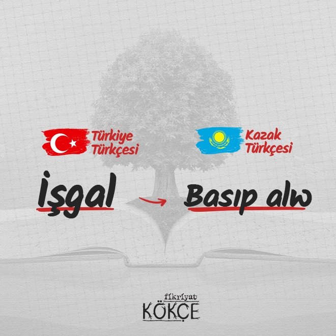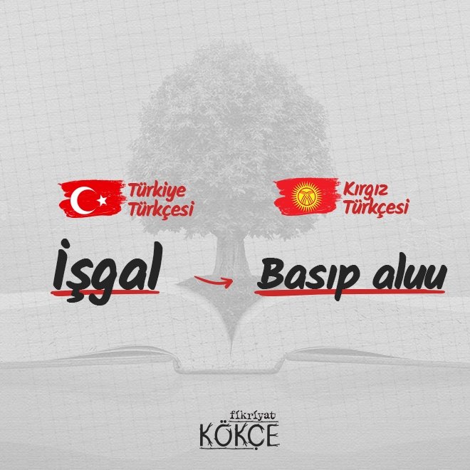 🔸 İşgal kelimesi Kazak Türkçesinde basıp alw şeklinde karşılık bulurken Kırgız Türkçesinde "basıp aluu"dur.