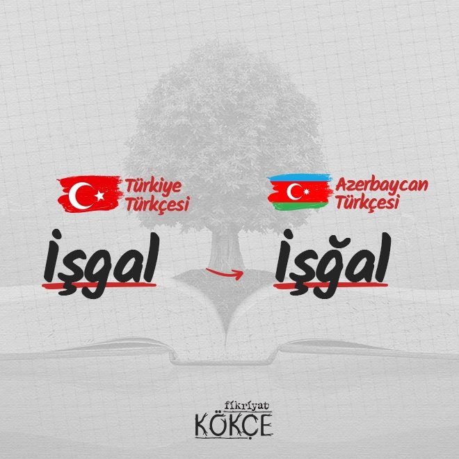 🔸 Azerbaycan Türkçesinin sözlü edebiyatında bulunan ve Türkçe kökenli olmayan işğal sözcüğü, Türkiye Türkçesinde kullanılan işgal ifadesinin karşılığıdır.