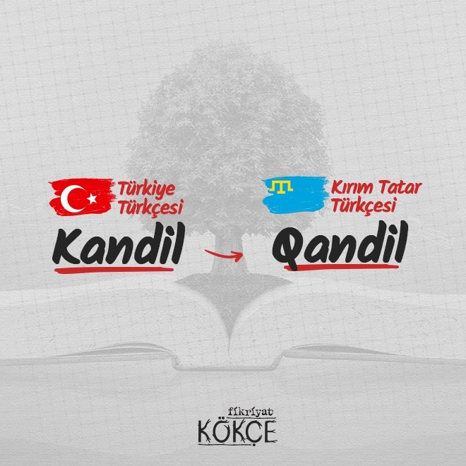 💠 Kırım lehçesinde kandil sözcüğünü "qandil" ifadesi karşılamaktadır.